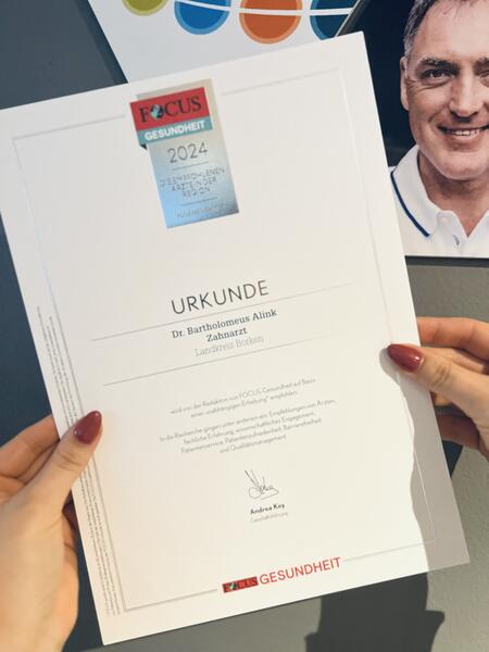 FOCUS-GESUNDHEIT empfiehlt seinen Lesern und Nutzern Ärzte, Kliniken und Rehakliniken, die auf Ihrem Gebiet führend sind. Über diese Urkunde haben wir uns heute seeeehr gefreut!