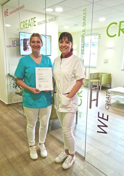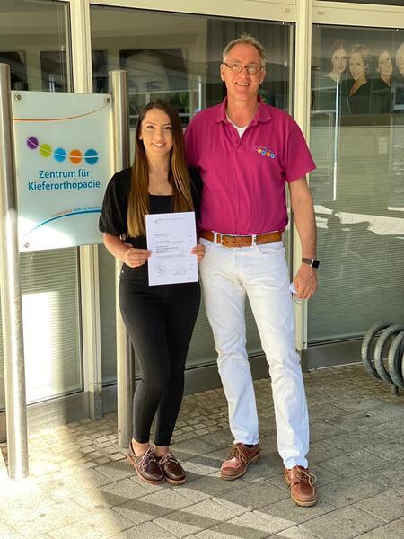 Und das mit Recht, denn unsere Kristina ist die nächste aus unserem Team, die ihre Fortbildung zur Zahnmedizinischen Kieferorthopädie-Assistentin bestanden hat!