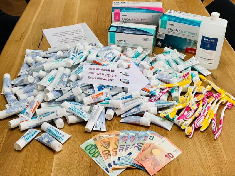 Also packten wir gestern auf die Schnelle Mundschutz, Zahnpasta, Zahnbürsten, Einweghandschuhe, Desinfektionsmittel und 300 € Bargeld zusammen - und das alles ist jetzt schon vor Ort!