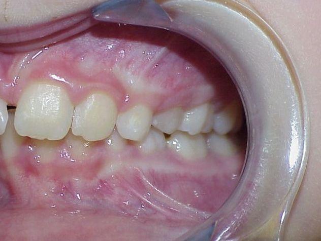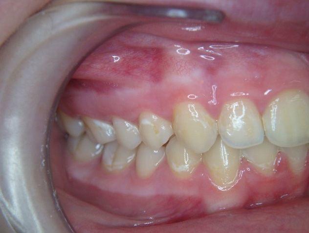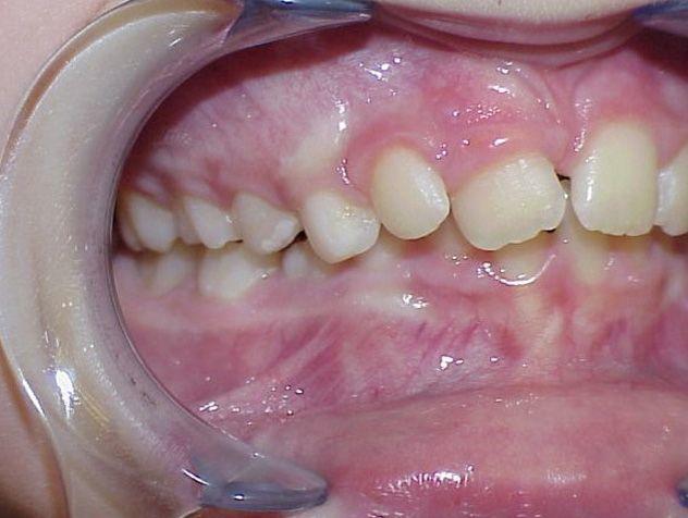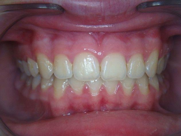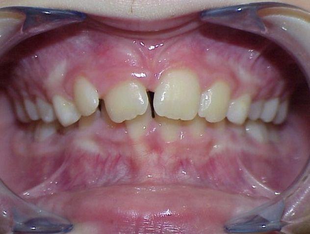 Vorher – Schiefstand und Lücken im Oberkiefer, sowie Drehstand im Oberkiefer.